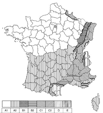mappa del paese suddivisa in regioni climatiche. Per la zona
